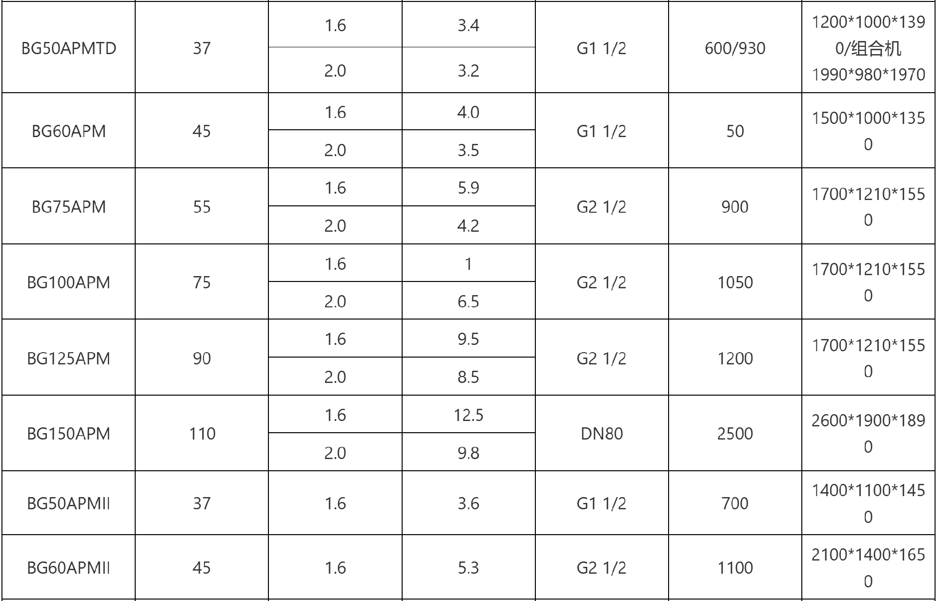 注:型号带TD为一体式机型,不带II为单级压缩机型,带II为双级压缩机型。